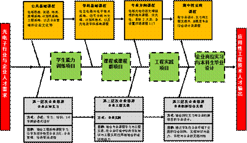 电子科学与技术专业借鉴国外CDIO工程教育理念和方法,以光电子技术行业产品生命周期的全过程为主线,全面进行工程教育改革,将学校与企业、知识与能力、理论与实践、综合素质与创新精神培养有机结合,形成学校、企业联合培养的“企业嵌入式”的一体化培养体系,实现卓越工程技术人才培养。