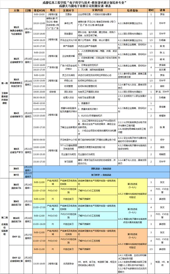 学院与天马微电子有限公司、成都菲斯特科技有限公司、成都东骏激光有限责任公司和成都飞扬科技有限公司,签约为电科专业的企业实践基地,在人才培养方案制定、学生企业实践、工程师资和实验室共建等方面进行长期的合作,在成为学生进行三个层次企业培养的场所。通过组织学生对相关企业的参观、学习和在企业环境下全面的综合训练,结合专业课程学习与工程实践,达到在企业环境中培养学生知识与工程实际应用相结合的意识和能力的目的,实现知识与能力、学校与企业的无缝对接。