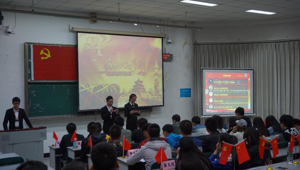 11月3日晚7点,365bet足球开户“庆十九大胜利召开”主题党知识竞赛决赛在4313教室举办,365bet足球开户全体党员、入党积极分子参加了本次比赛。