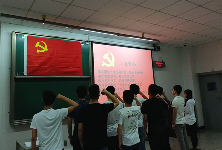 会议最后,全体同学起立,举起自己的右手,在党旗下重温入党誓词,此次支部大会最终在这个庄严的氛围下结束。在此希望各位学生党员严以律己,做好群众的领头羊,争做一名合格的优秀党员。